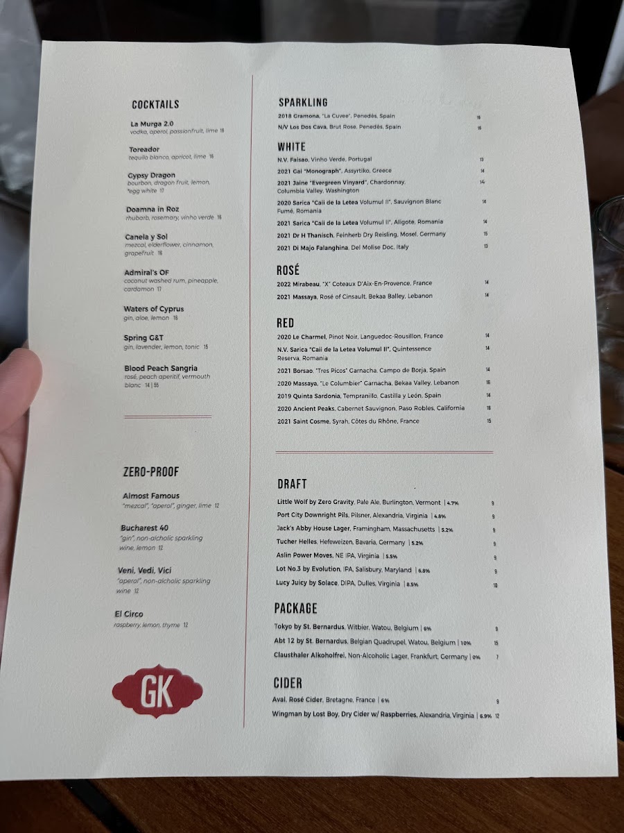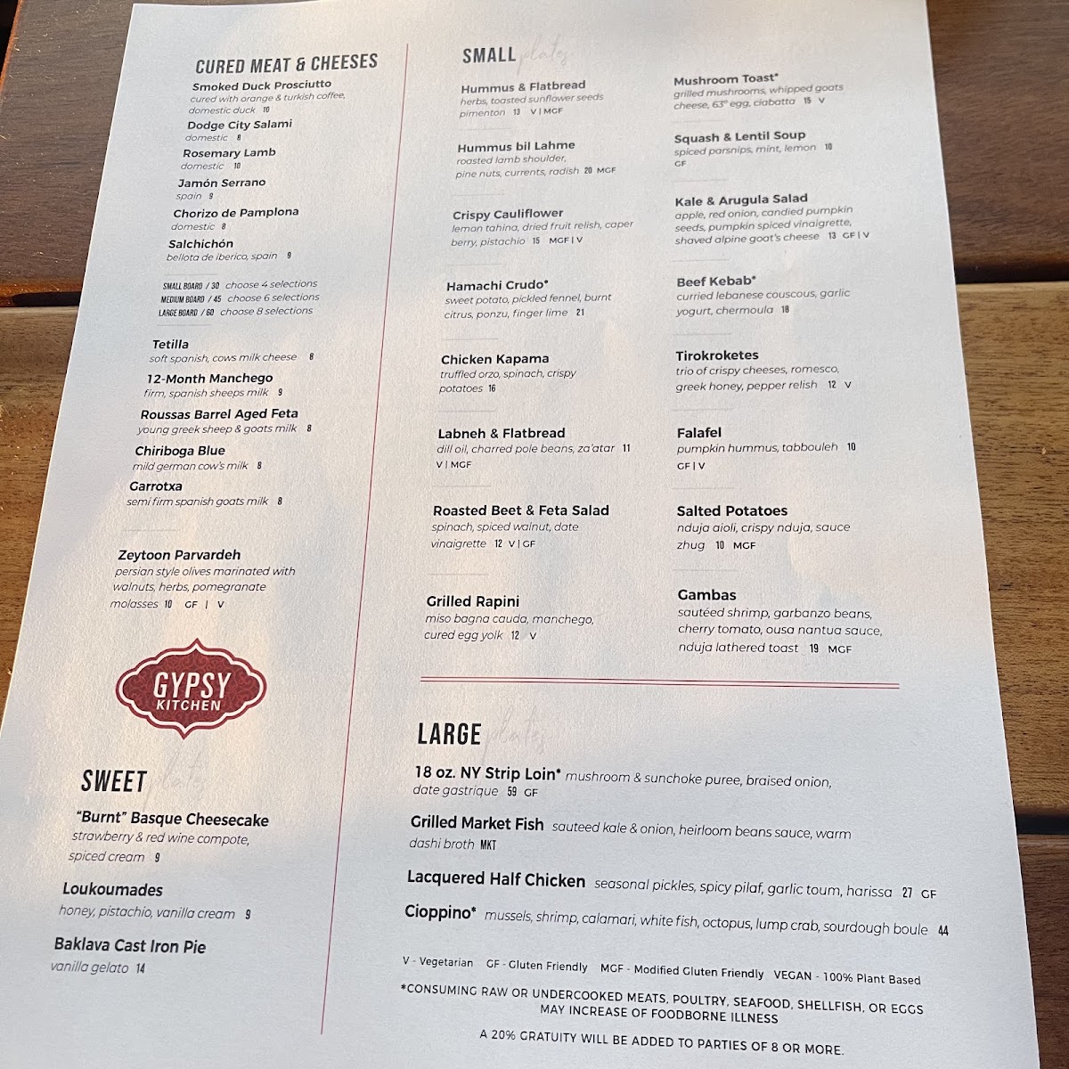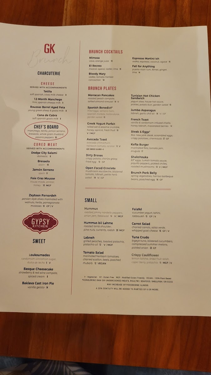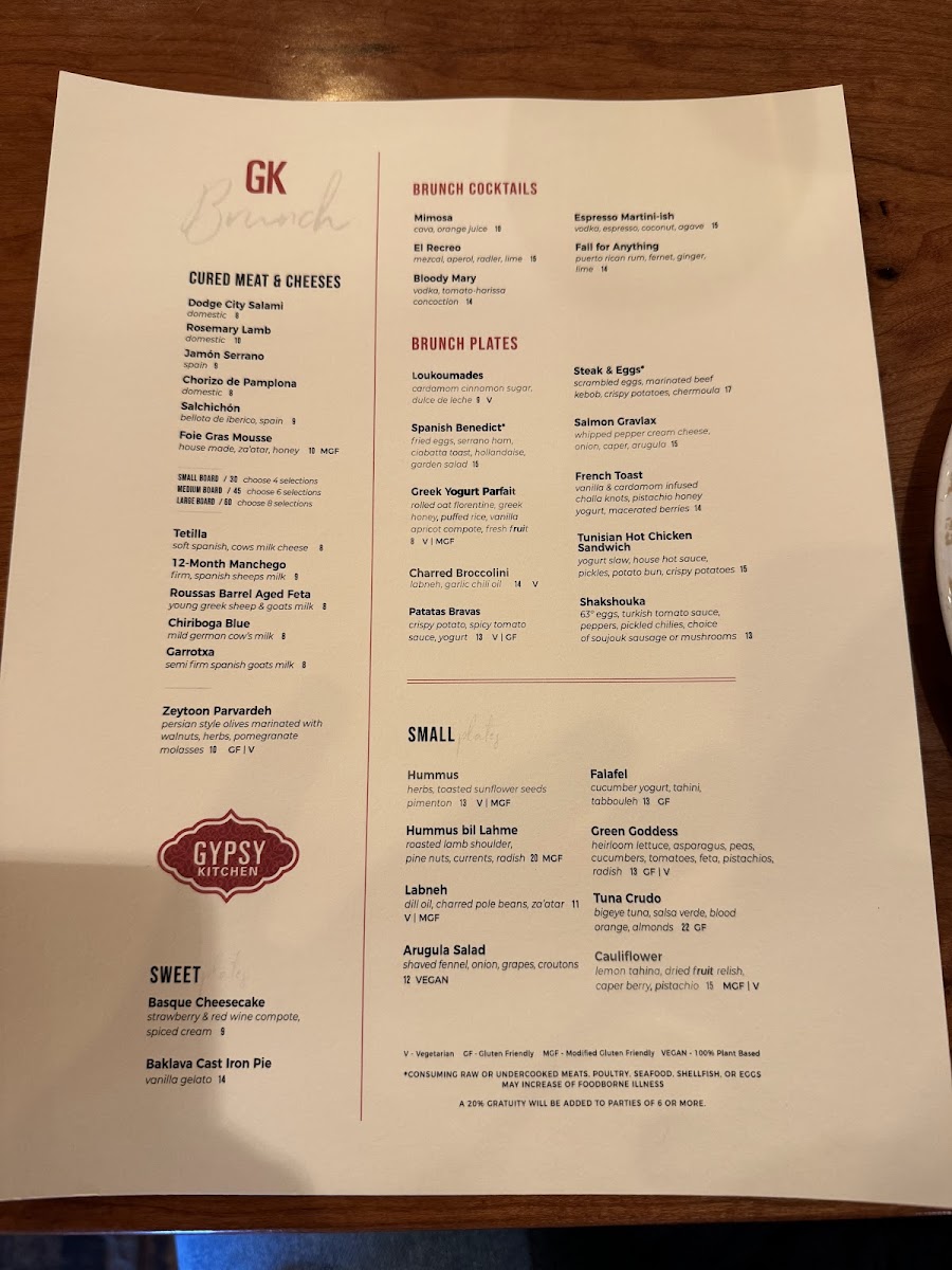Gypsy Kitchen DC Menu